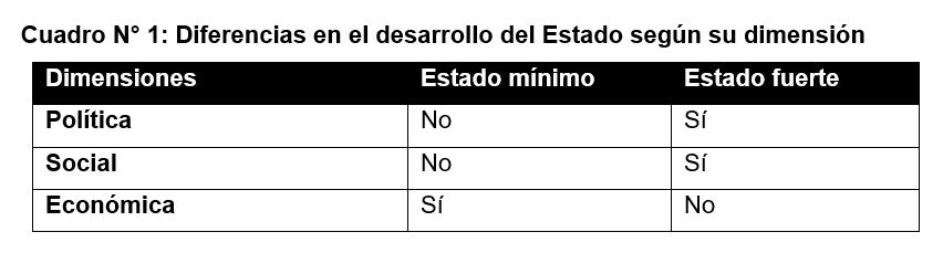 Es decir, el Estado tiene el deber y compromiso de promover la compensación social entre todos nosotros. Pero no olvidando el papel de “Estado fuerte” y/o “Estado débil”(3) según las diferentes dimensiones como lo político, económico y social.