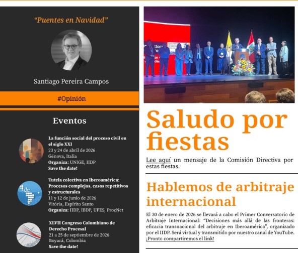 Boletín de noticias del Instituto Iberoamericano de Derecho Procesal Instituto Iberoamericano de Derecho Procesal, IIDP Comparte esto: Haz clic para compartir en X (Se abre en una ventana nueva) X Haz clic para compartir en Facebook (Se abre en una ventana nueva) Facebook Me gusta Cargando... Publicado por boletinsociedades SOCIEDADES es un equipo de alumnos y ex alumnos de la Facultad de Derecho de la Universidad Nacional Mayor de San Marcos, que se dedica al estudio e investigación del Derecho Ver todas las entradas de boletinsociedades